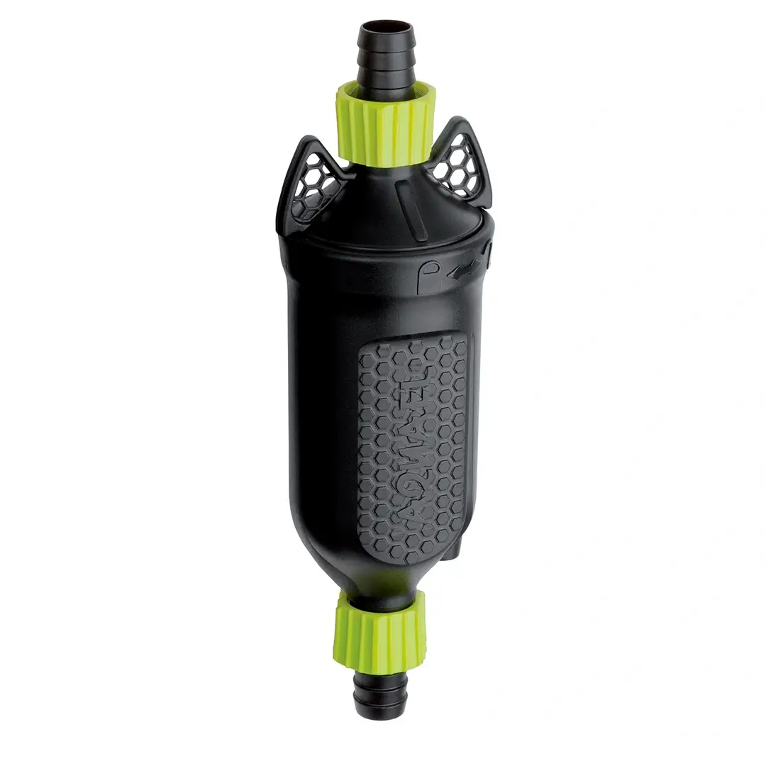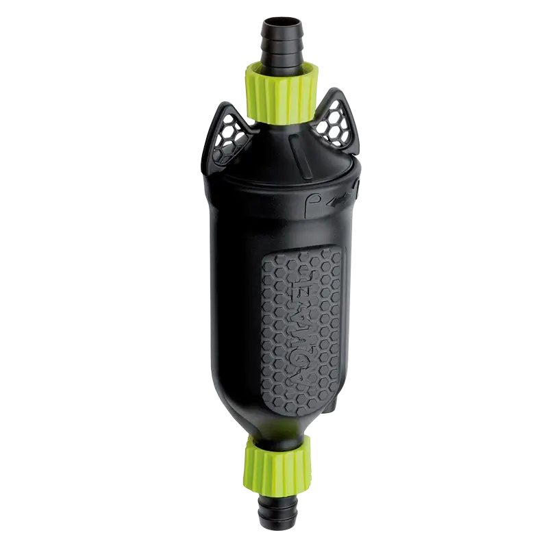 Instalação em Linha: Conectores de mangueira idênticos em ambos os lados para montagem simples.