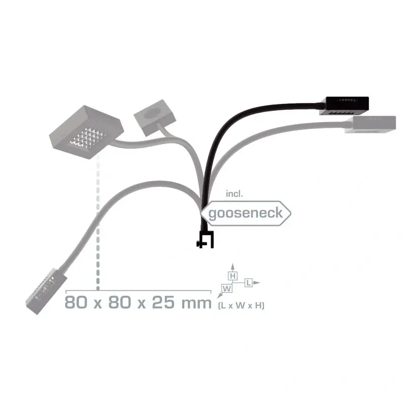 – Um pescoço de ganso flexível garante uma fixação firme e fácil alinhamento