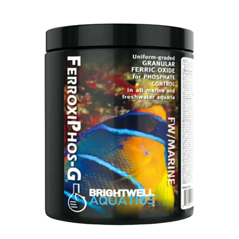 FerroxiPhos-G da BRIGHTWELL AQUATICS remove direta e eficientemente fosfato reativo da água do aquário, também remove silicato e material orgânico à base de fosfato da água do aquário, o que geralmente resulta em melhor clareza da água (particularmente em aquários com cargas biológicas pesadas). Seguro para uso em todos os aquários de água doce e marinhos, incluindo recifes e sistemas plantados.