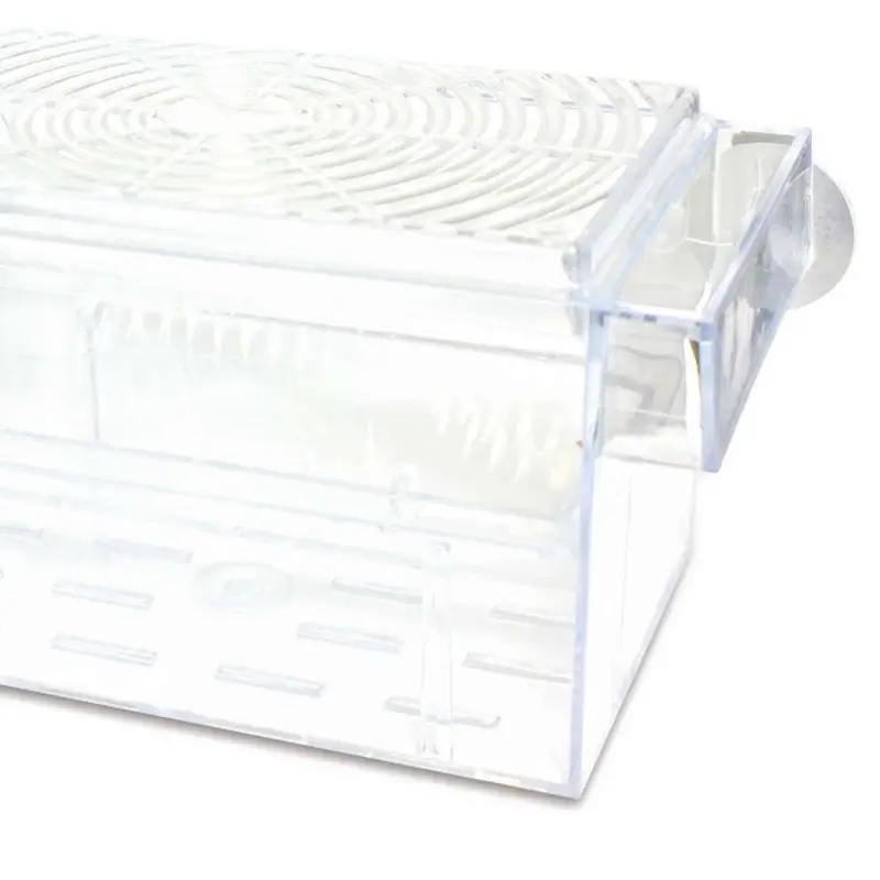 Criadeira Flutuante serve para reservar peixes, crias ou invertebrados no aquário. Proteção dos filhotes da mãe graças à grade de separação inferior. Pode ser utilizado para manutenção e engorda de alevinos ou crescimento e proteção de pequenos camarões em aquário de recife.