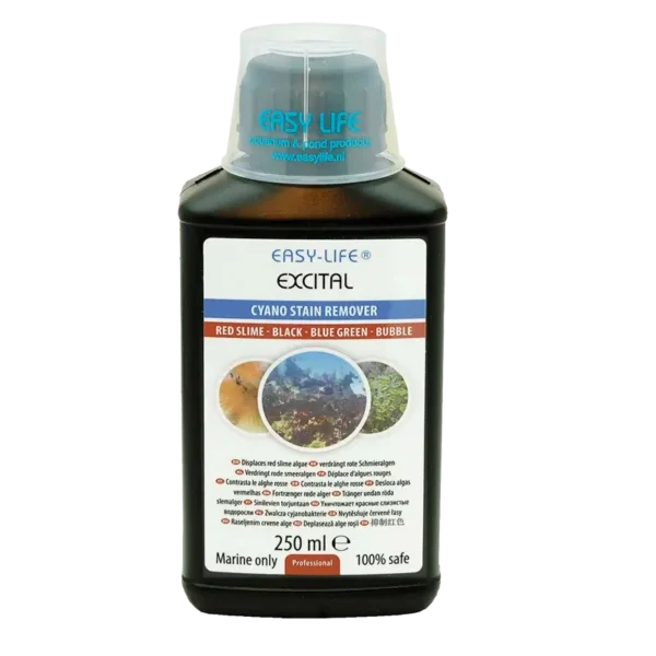 Excital Cyanobacteria Remover é a solução inovadora e segura para acabar com as cianobactérias, conhecidas como “algas vermelhas”, que invadem os aquários de recife. Desenvolvido para atuar de forma eficaz sem recorrer a antibióticos ou compostos à base de cobre, o Excital Cyanobacteria Remover garante um tratamento seguro para os seus peixes e corais. A presença de cianobactérias, muitas vezes causada por temperaturas elevadas ou excesso de matéria orgânica, pode comprometer a beleza e a saúde do seu aquário. O Excital Cyanobacteria Remover combate este problema na sua origem, eliminando as cianobactérias e devolvendo a clareza à água. A sua fórmula segura e fácil de usar faz do Excital Cyanobacteria Remover a escolha ideal para qualquer aquarista, desde o iniciante ao mais experiente.