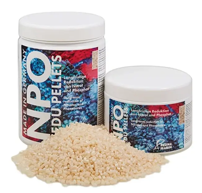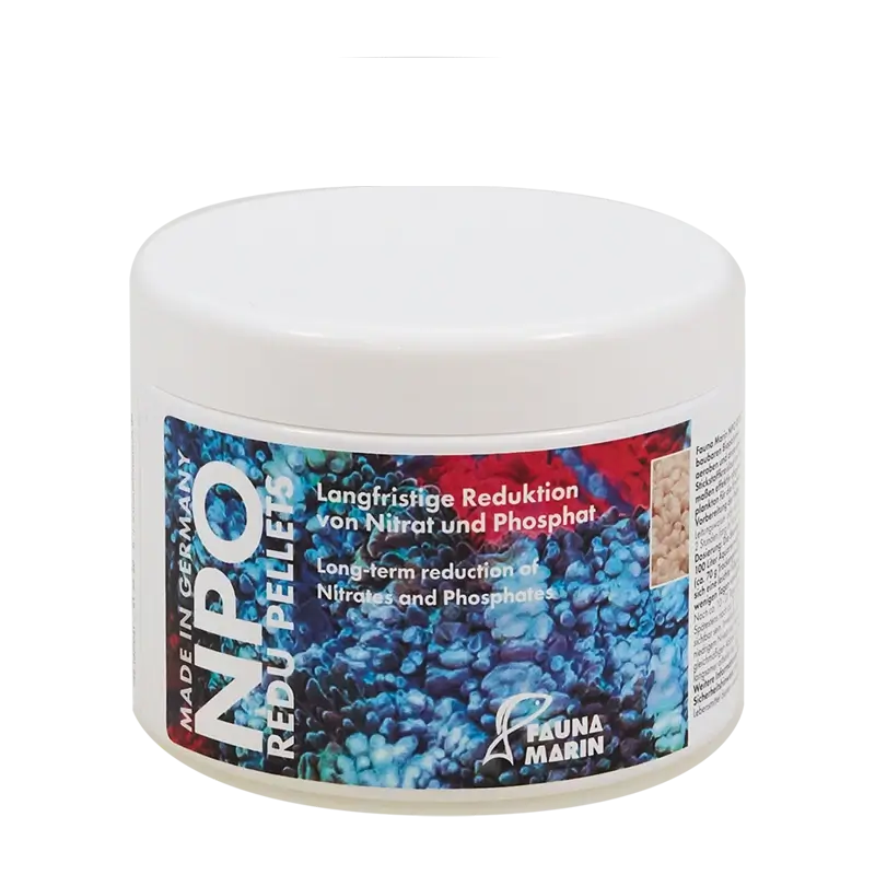 Fauna Marin NPO Redu Pellets No3 & Po4 são biopolímeros totalmente biodegradáveis, criados especificamente para a diminuição de nutrientes em aquários de água salgada. Estes pellets estimulam o desenvolvimento de bactérias aeróbicas e anaeróbicas, regulando o ciclo do azoto no sistema de filtração e contribuindo para a manutenção de um ambiente aquático saudável e equilibrado.