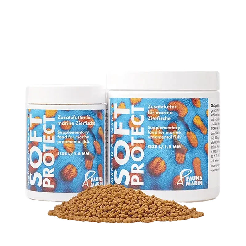 Marine Soft Protect é um alimento especial para peixes marinhos ornamentais. Apoia a regeneração e suporte das próprias defesas dos peixes e para o fortalecimento geral das funções vitais. Ideal para a alimentação inicial após o transporte, aclimatação, doença e em outras situações de stresse. Reduz significativamente a taxa de perda de animais importados.
