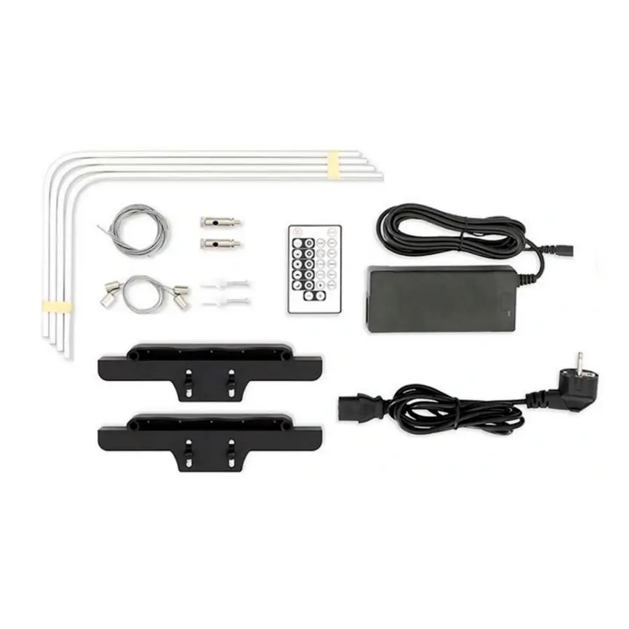 Facilidade de Instalação e Utilização: O design modular e os acessórios incluídos tornam a instalação simples e rápida. O controlador infravermelho e o parafuso manual permitem ajustes fáceis e precisos.