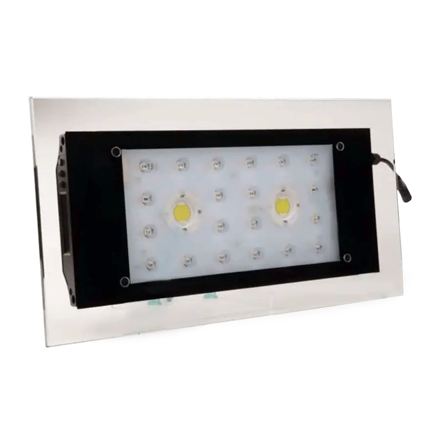 Placa óptica acrílica: Proporciona uma distribuição uniforme da luz, eliminando sombras e pontos quentes que podem prejudicar o crescimento dos corais.