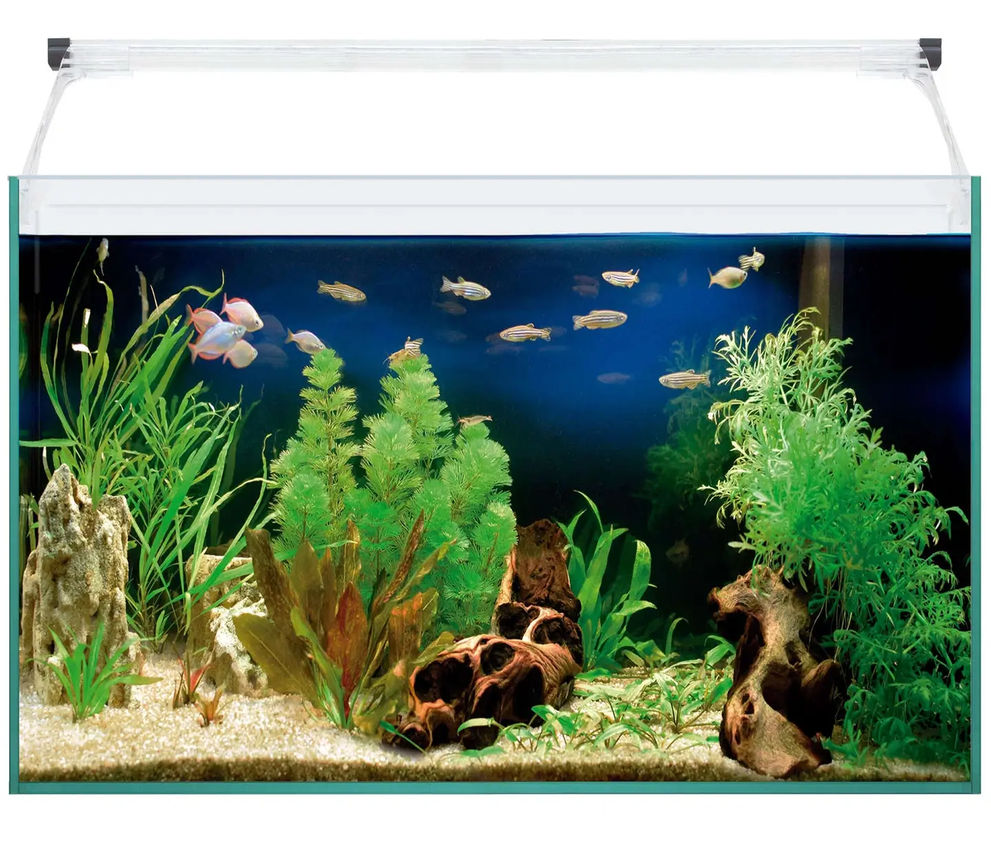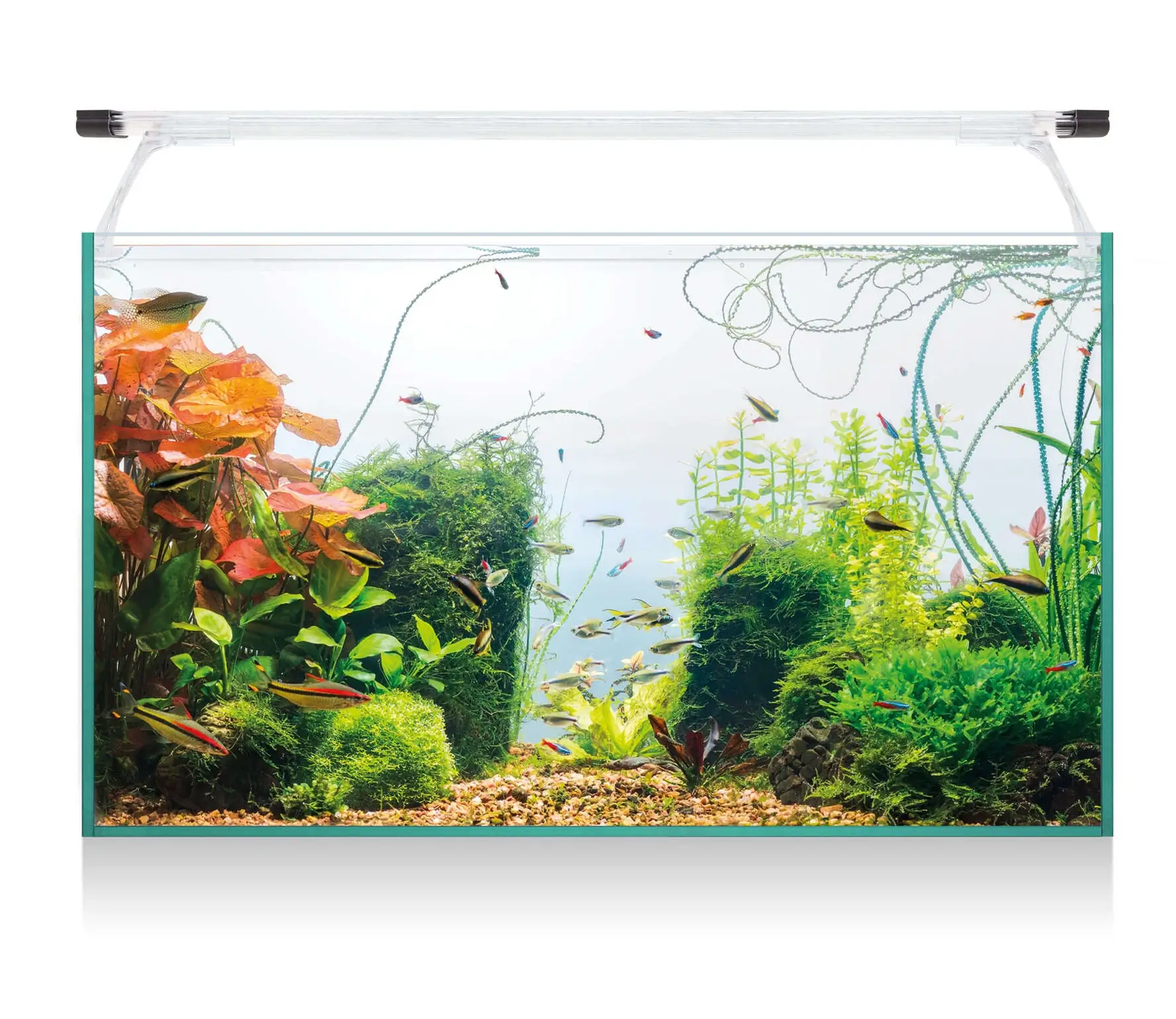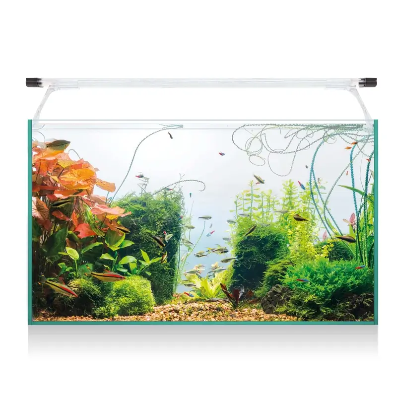 Os novos aquários Aqua Light Glass destacam-se pelas suas linhas finas e design elegante. Sem molduras, estes aquários utilizam um confortável tapete de espuma de polietileno de alta densidade, proporcionando segurança e estabilidade em qualquer superfície. A tampa foi substituída por um suporte transparente de fácil fixação, que eleva a iluminação LED, garantindo uma melhor dispersão da luz e uma distribuição uniforme em toda a superfície do aquário.