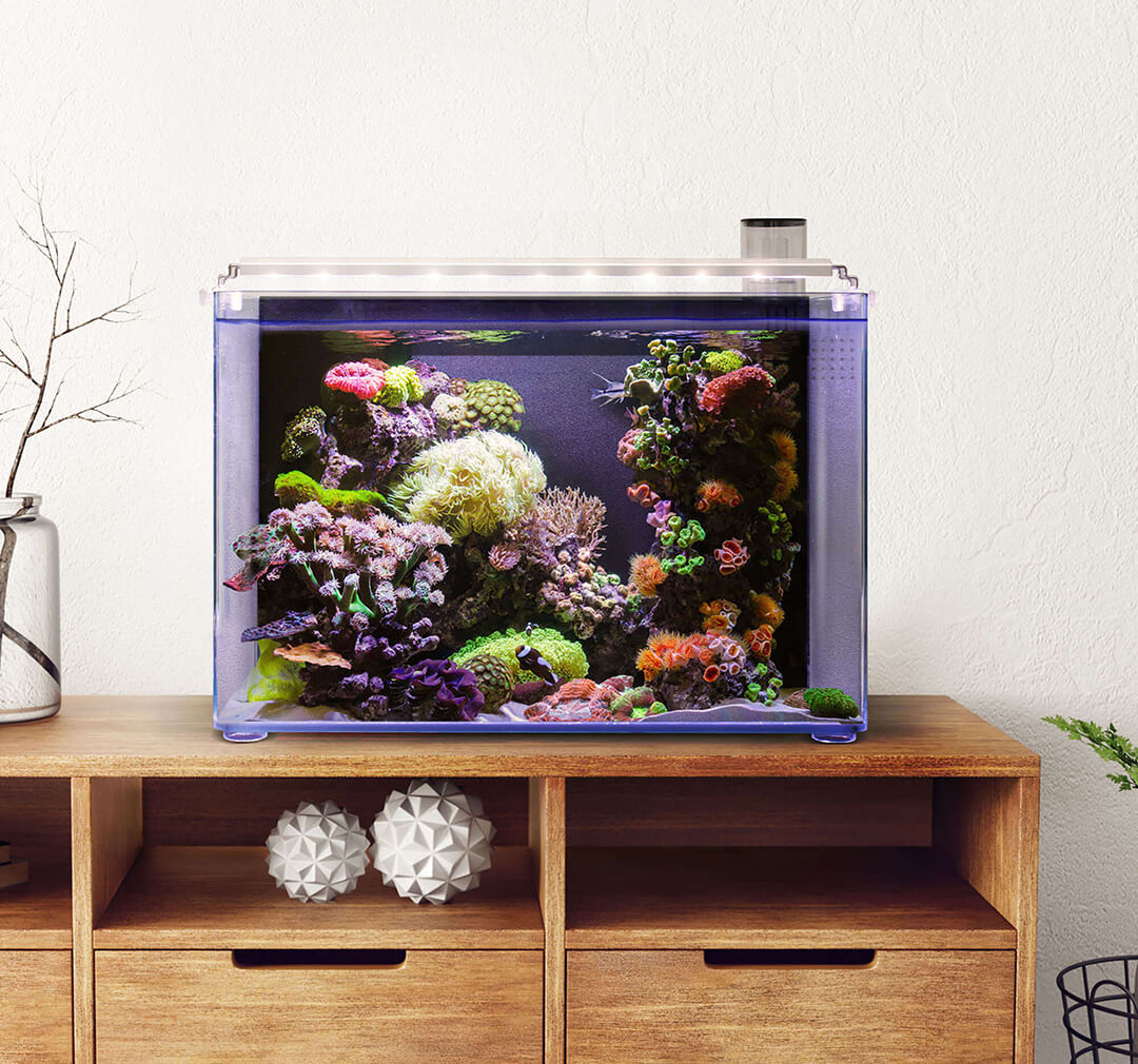 Os aquários Nano Marine são a escolha perfeita, quer esteja a iniciar-se no mundo dos aquários de água salgada ou já seja um especialista. Estes elegantes aquários Nano-Reef são a solução ideal para todas as suas necessidades. O Nano Marine inclui um reservatório traseiro que funciona como uma sump, semelhante aos aquários marinhos mais avançados. Fabricados com vidro claro e sem cantos, garantem qualidade, robustez e grande beleza.