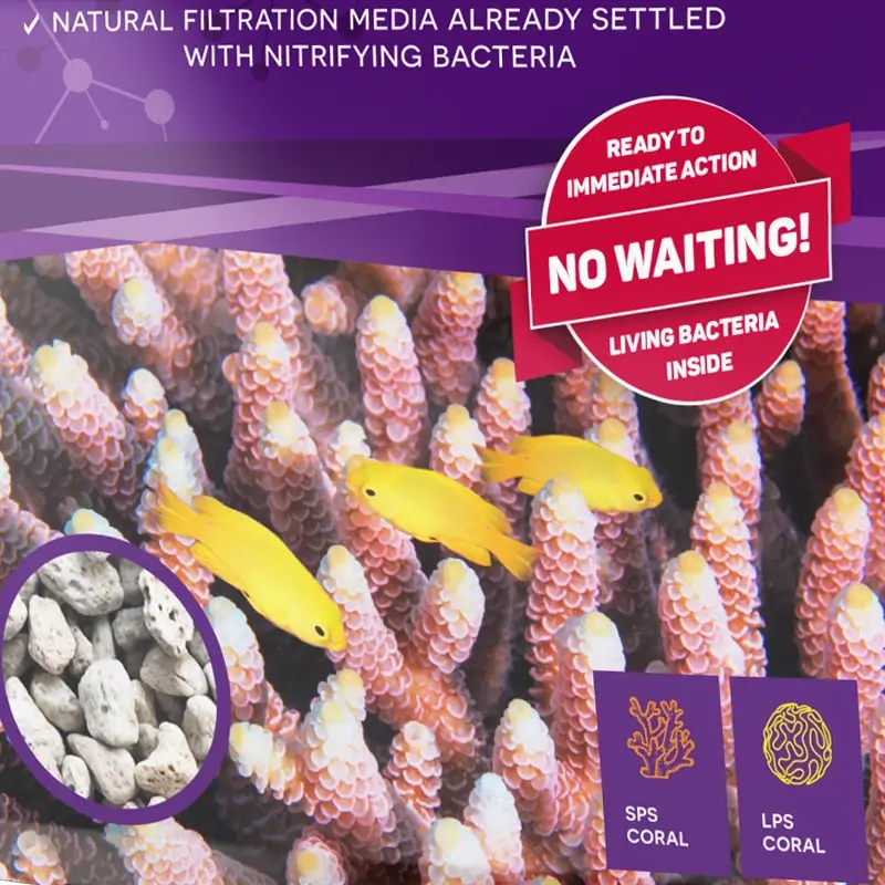 Life Bio Fil é uma média filtrante biológica natural. Devido a estirpes bacterianas cuidadosamente selecionadas, inicia e suporta o processo de nitrificação, o que acelera a maturação do aquário. Aumenta a eficiência da filtração sendo perfeita para aquários recém-estabelecidos e também aumentando a eficiência em aquários mais antigos e já em funcionamento.