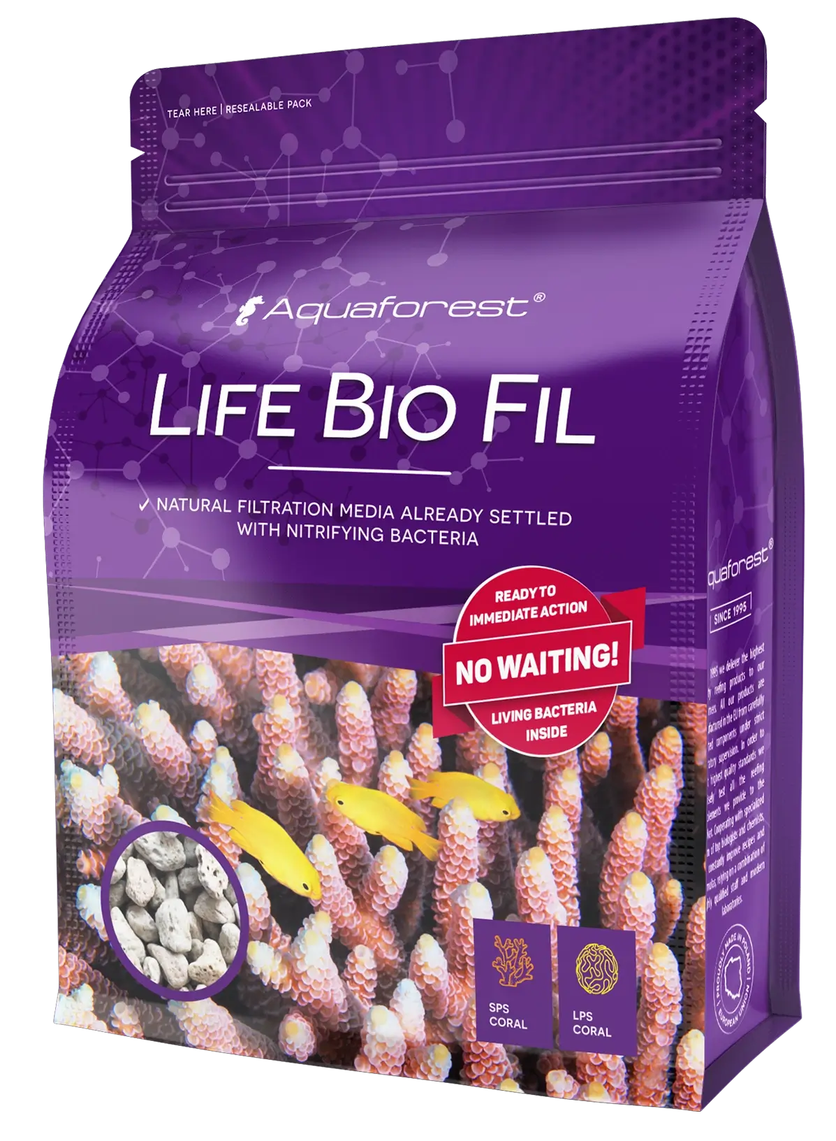 Devido ao seu conteúdo bacteriano, inicia o processo de nitrificação quase imediatamente – não é necessário esperar pela colonização da média. Life Bio Fil deve ser colocado na sump com bom fluxo de água. 1000 ml de média devem ser usados num aquário com capacidade de 400 l. Recomendamos substituir 10-20% do enchimento a cada 6 semanas.