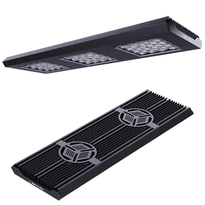 Uma única unidade de Reef Flare Pro L fornece luz para aquário de SPS com 90 cm de comprimento ou 1,2 metros de comprimento se for de corais moles/LPS.
