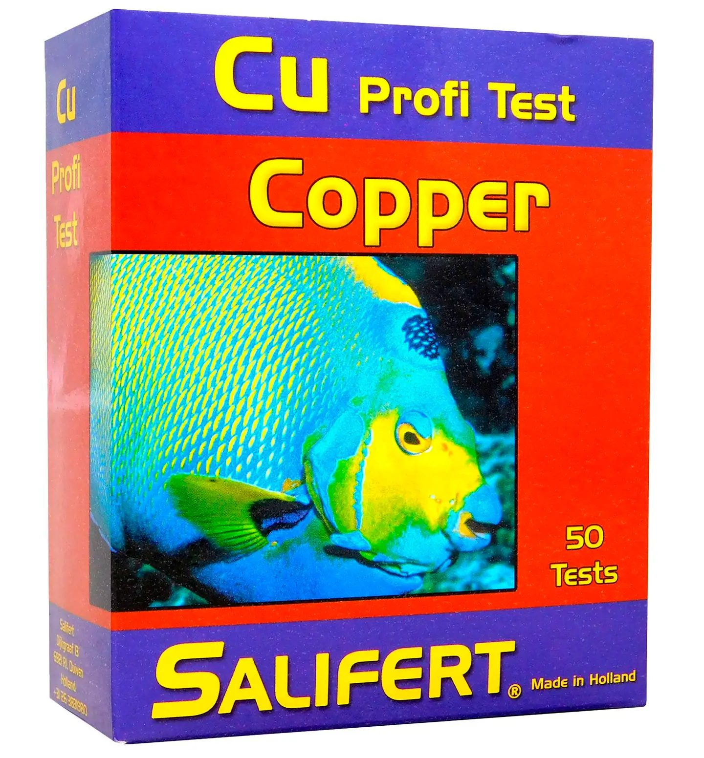 O teste de cobre Salifert (CU) é muito simples de realizar. É capaz de determinar os níveis de cobre que são tóxicos para corais e invertebrados. O kit pode realizar aprox. 50 medições.