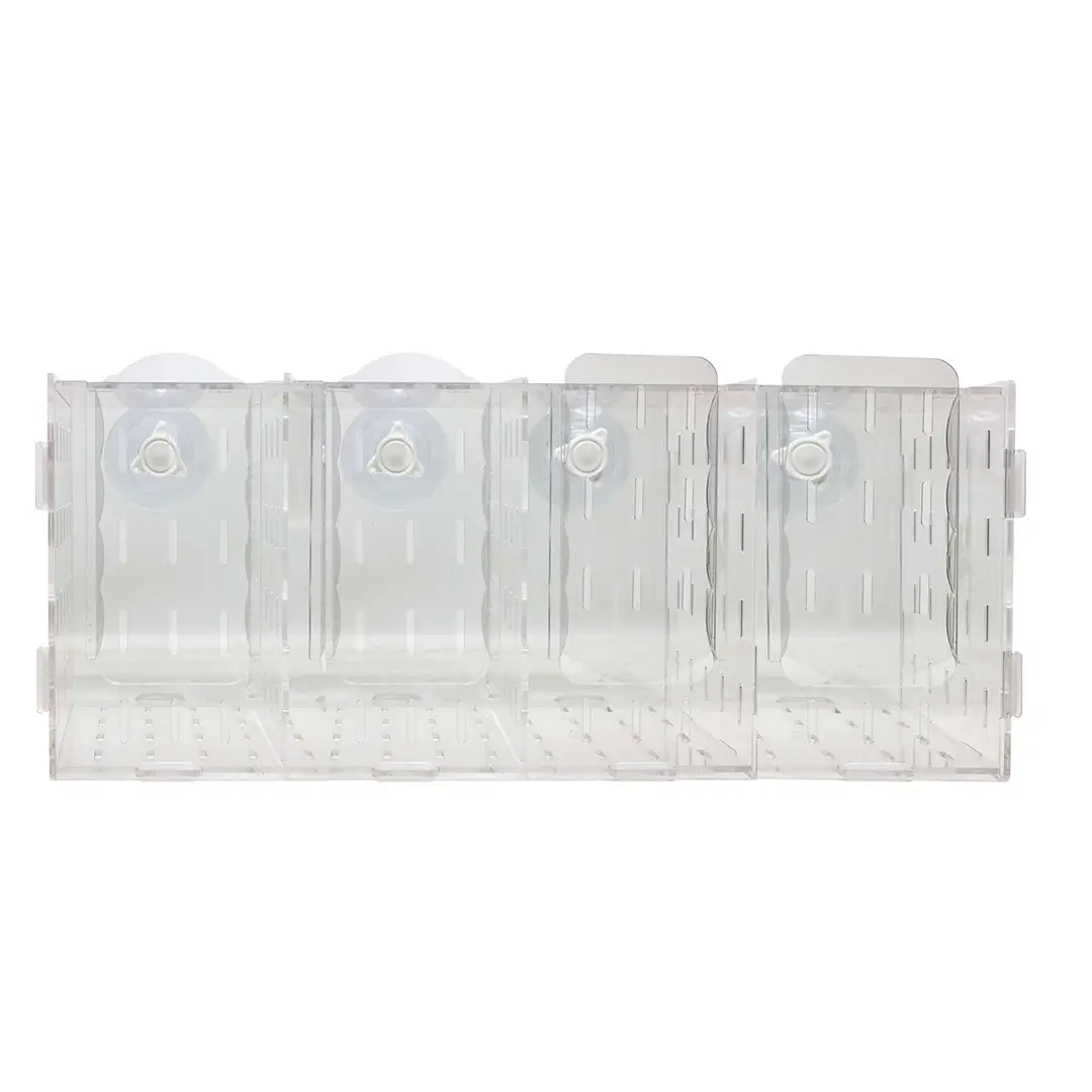 As ventosas permitem a colocação em qualquer zona do aquário e as paredes transparentes têm várias aberturas que permitem um bom escoamento e oxigenação da água.