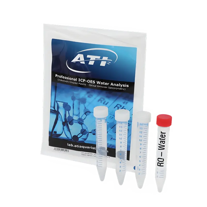 Testes ICP-OES ATI é uma análise total da água do aquário a partir de amostra. Controlo de 38 parâmetros. Fornecimento do que é necessário para se proceder à análise da água para reencaminhar para analisador ICP-OES avançado.