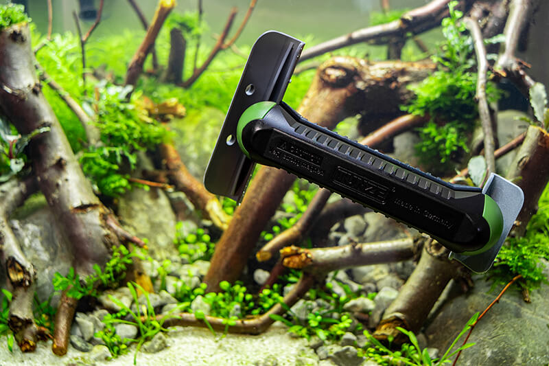 Este limpador de vidros torna quase impossível riscar o painel do aquário (vidro ou acrílico). O imã interno dista mais de 3mm do vidro do aquário e evita que a areia do aquário fique presa. As duas laminas de plástico removem as algas de modo nitidamente melhor dos vidros que uma superfície plana de limpeza, a limpeza é tão boa, quanto a feita com uma lamina afiada de metal. A vida útil da lamina corresponde a vários meses até aprox. um ano.